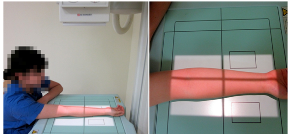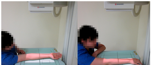 - forearm의 fracture이나 fracture에 따르는 elbow joint과 Articulations of hand의 변위 등의 병변 유무를 관찰한다.