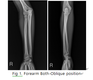 - ulna과 radius의 fracture 및 fracture에 따르는 elbow joint과 Articulations of hand의 변위 등의 병변 유무를 관찰한다.